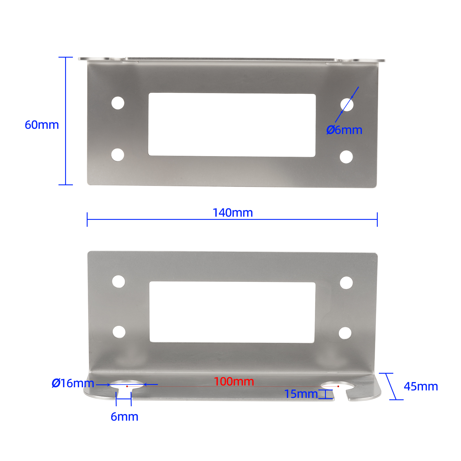 Bracket size: 16mm mounting hole diameter, 5mm nut hole diameter
