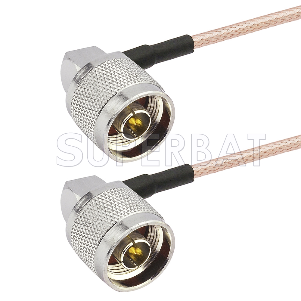 AC-N01RA-N01RA-142 is a N type male right angle to N type male right angle cable using RG142 coax. type N male right angle to type N male right angle cable assembly uses a 50 Ohm N type for connector 1 and a 50 Ohm type N for connector 2. type N right angle to type N right angle coaxial cable assembly uses 90 degree right angle coax cable connector.