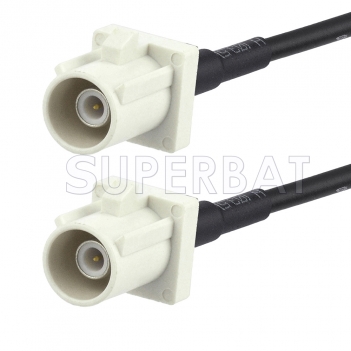 Our plug FAKRA to plug FAKRA cable assembly uses a flexible cable type that is 50 Ohm. AC-F03BSP-F03BSP-174 FAKRA plug to FAKRA plug cable assembly is constructed with RG174 coax and the maximum VSWR is 1.4:1.