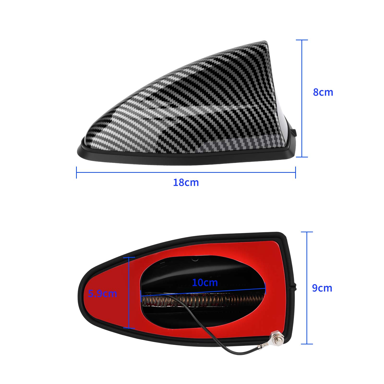 Universal: This universal shark fin antenna measures 18 x 9 x 8 cm and is suitable for most saloon cars and SUVs on the market. It is only compatible with flat roofs and not curved roofs. (Please verify your vehicle's antenna base dimensions and roof curvature before ordering.)