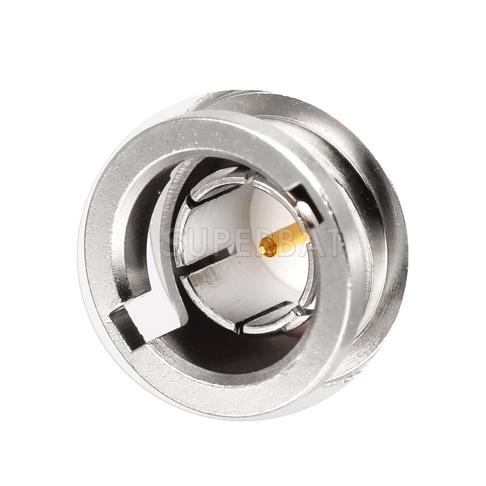 Mini BNC 75 ohm full crimp straight bulkhead jack This rear mounted jack has a gold plated crimp centre contact, the outer contact is nickel plated. Both centre contact and crimp sleeve are annealed for enhanced performance. Suitable for use with RG179 and similar cables in group AB.