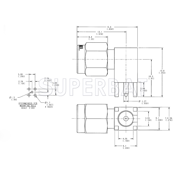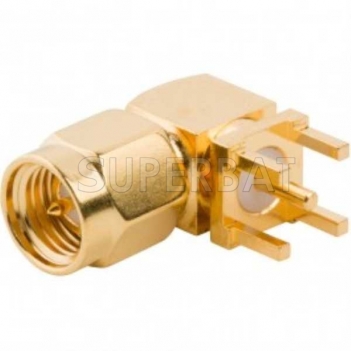 Series: SMA Termination Type: PCB Gender: Plug , Male Polarity: Standard Body Style: Right Angle Impedance: 50 Body Material: Brass Body Plating: Gold Frequency Range: DC-3GHz